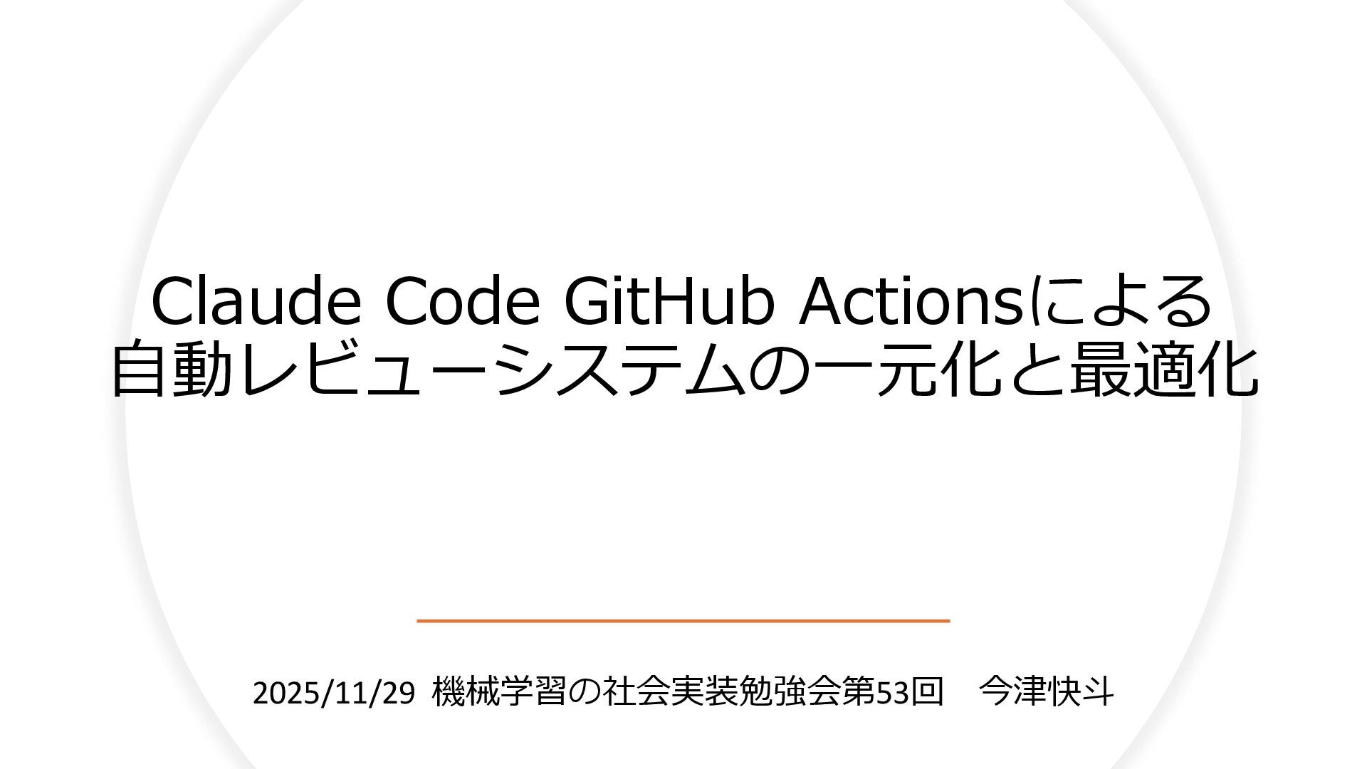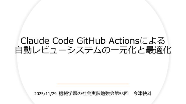 Claude Code GitHub Actionsによる 自動レビューシステムの一元化と最適化 2025/11/29 機械学習の社会実装勉強会第53回 今津快斗