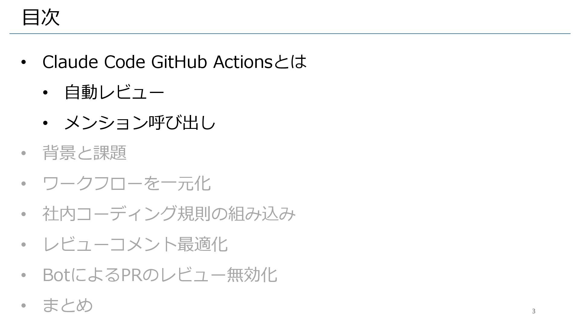 目次 • Claude Code GitHub Actionsとは • 自動レビュー • メンション呼び出し