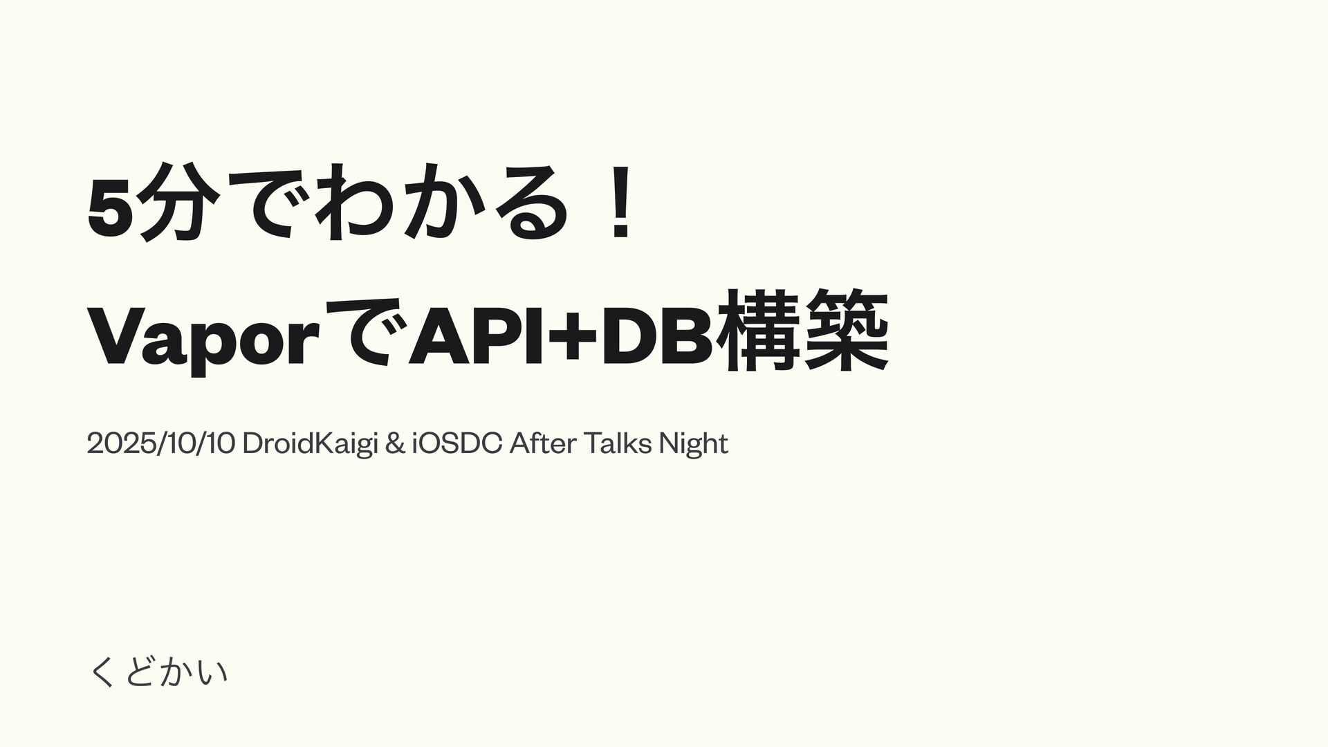 5ͰΘ͔Δʂ VaporͰAPI+DBߏங 2025/10/10 DroidKaigi & iOSDC After Talks Night ͘Ͳ͔͍