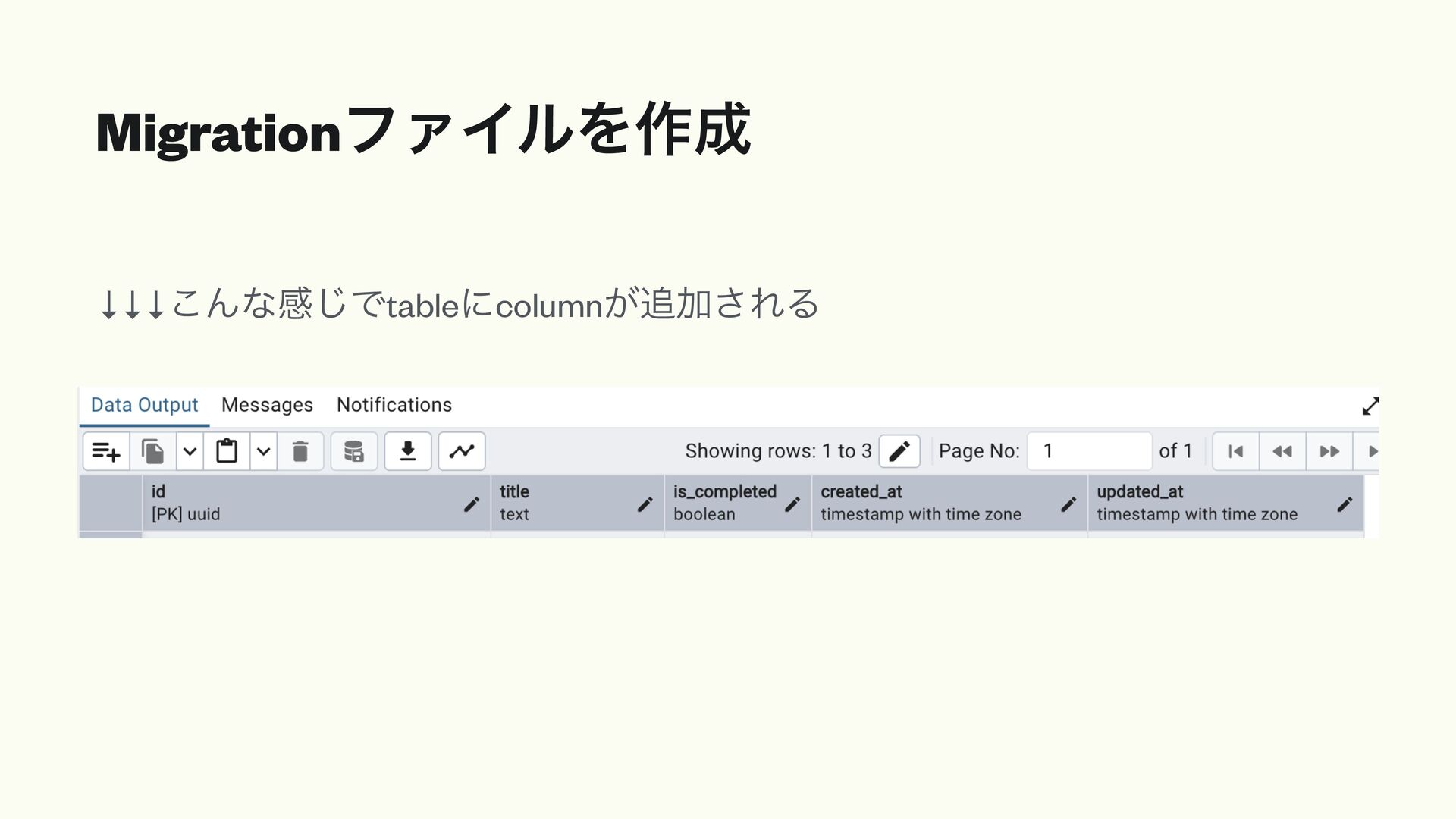 MigrationϑΝΠϧΛ࡞ ↓↓↓͜Μͳײ͡Ͱtableʹcolumn͕Ճ͞ΕΔ