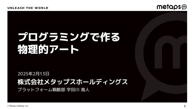 1 © Metaps Holdings, Inc. プログラミングで作る 物理的アート プラットフォーム戦略部 宇田川 海人