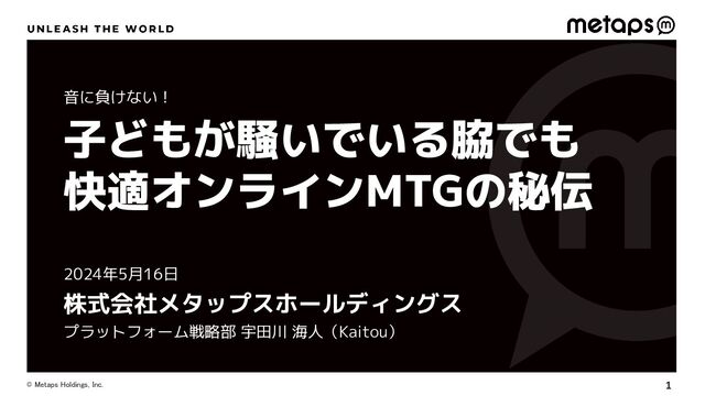 1 © Metaps Holdings, Inc. 子どもが騒いでいる脇でも 快適オンラインMTGの秘伝 音に負けない! プラットフォーム戦略部 宇田川