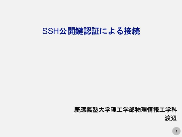 1 SSH公開鍵認証による接続 慶應義塾大学理工学部物理情報工学科 渡辺