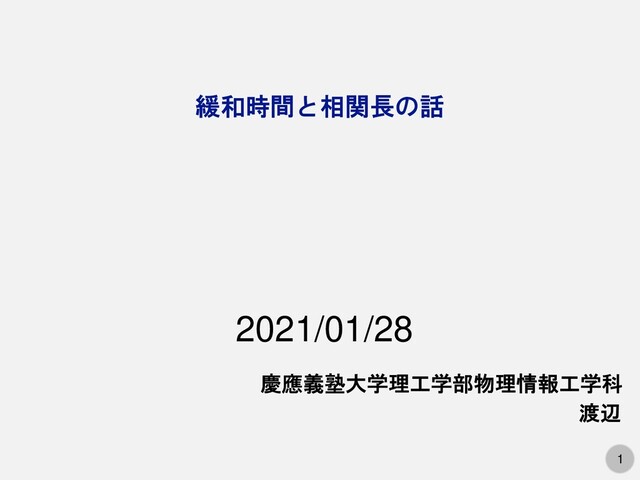 1 緩和時間と相関長の話 慶應義塾大学理工学部物理情報工学科 渡辺 2021/01/28