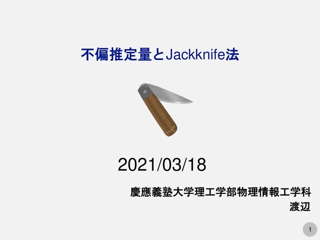 1 不偏推定量とJackknife法 慶應義塾大学理工学部物理情報工学科 渡辺 2021/03/18