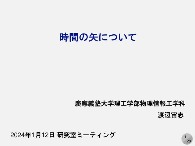 1 28 慶應義塾大学理工学部物理情報工学科 渡辺宙志 2024年1月12日 研究室ミーティング 時間の矢について