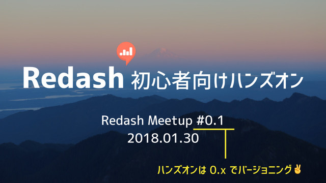 Redash 初心者向けハンズオン Redash Meetup #0.1 2018.01.30 ハンズオンは 0.x でバージョニング✌