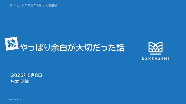 ©KAKEHASHI inc. やっぱり余白が大切だった話 2025年5月8日 松本 明紘 D-Plus トウキョウ1周年大感謝祭 続