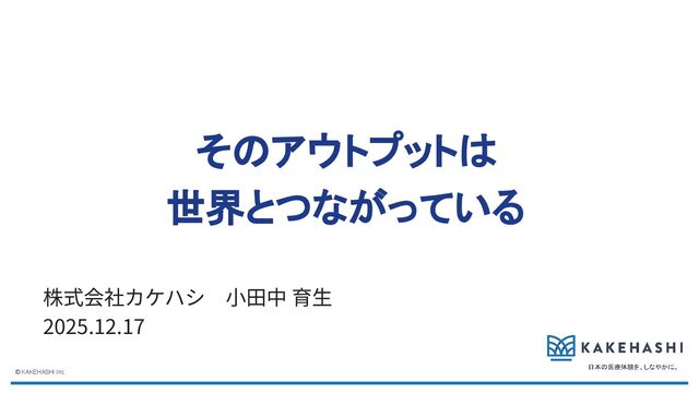1. ⼩⽥中 育⽣(おだなか いくお) 株式会社ナビタイムジャパンでVP of Engineeringとして アジャイル‧OKRの組織展開‧浸透を実践。 2023年10⽉にエンジニアリングマネージャーとして株式会社カケ ハシにジョイン、2025年3⽉よりSCM Head