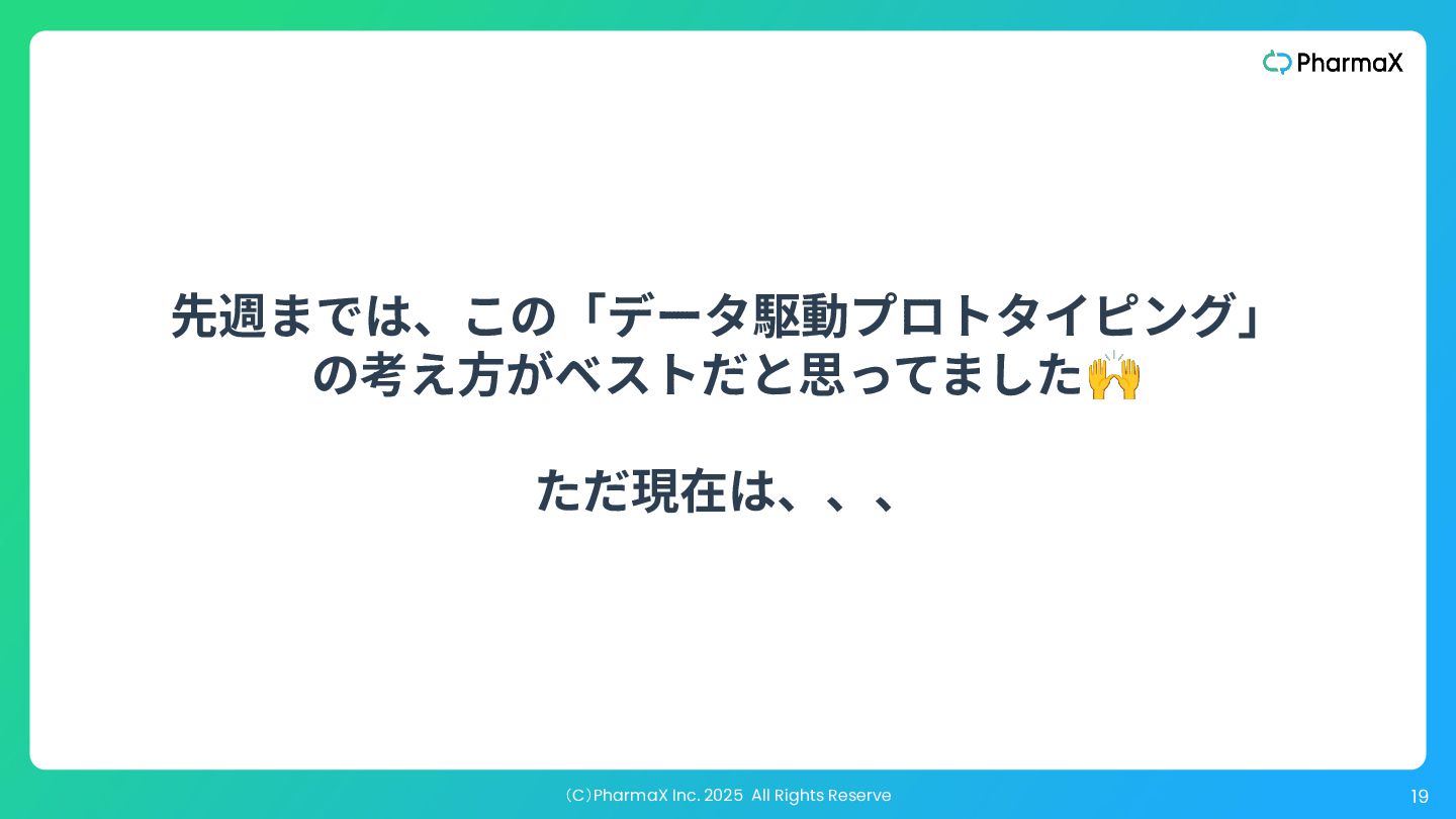 19. (C)PharmaX Inc. 2025 All Rights Reserve 25 本⽇の構成 1. AI時代のプロトタイピングについて(前回イベント内容おさらい)