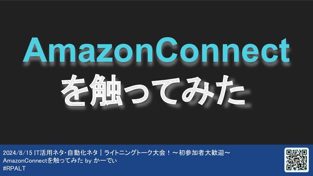 AmazonConnect を触ってみた 2024/8/15 IT活用ネタ・自動化ネタ|ライトニングトーク大会!~初参加者大歓迎~ AmazonConnectを触ってみた by かーでぃ #RPALT