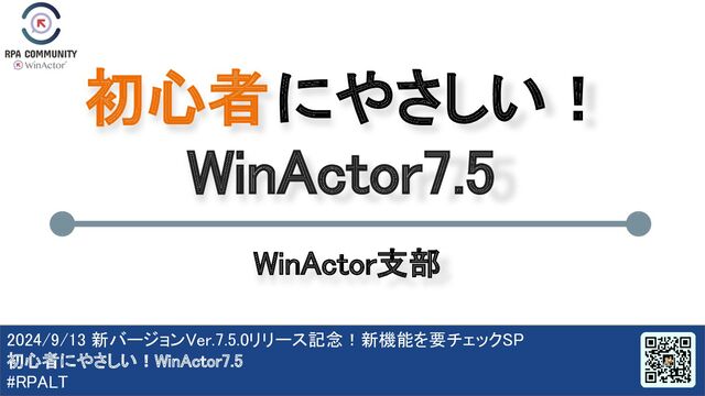 2024/9/13 新バージョンVer.7.5.0リリース記念!新機能を要チェックSP 初心者にやさしい!WinActor7.5 #RPALT 初心者にやさしい! WinActor7.5 WinActor支部