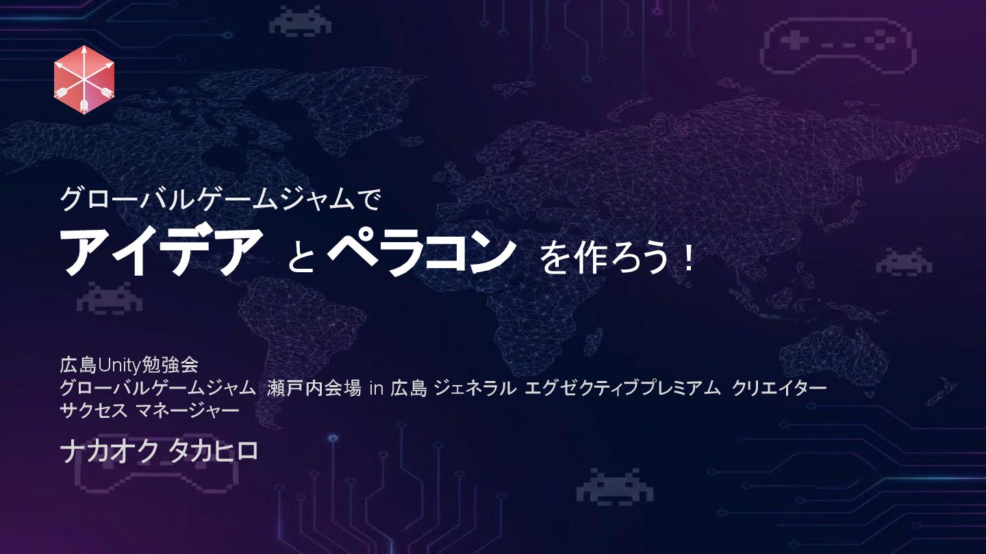 1. グローバルゲームジャムで アイデア と ペラコン を作ろう! 広島Unity勉強会 グローバルゲームジャム 瀬戸内会場 in 広島