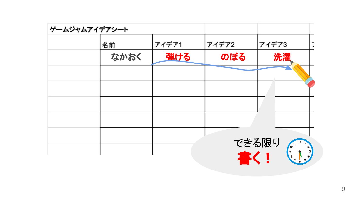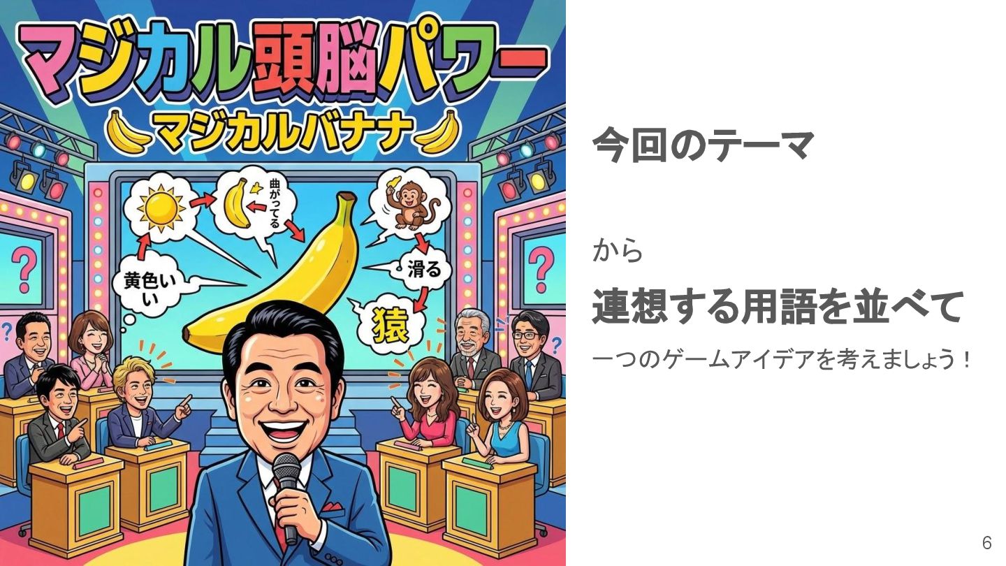 ゲームジャムで最初に実施したワーク/アイデアソンで利用した資料です。