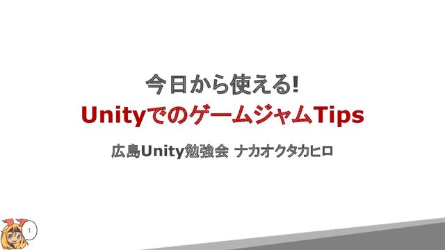 今日から使える!UnityでのゲームジャムTips で発表した資料です。