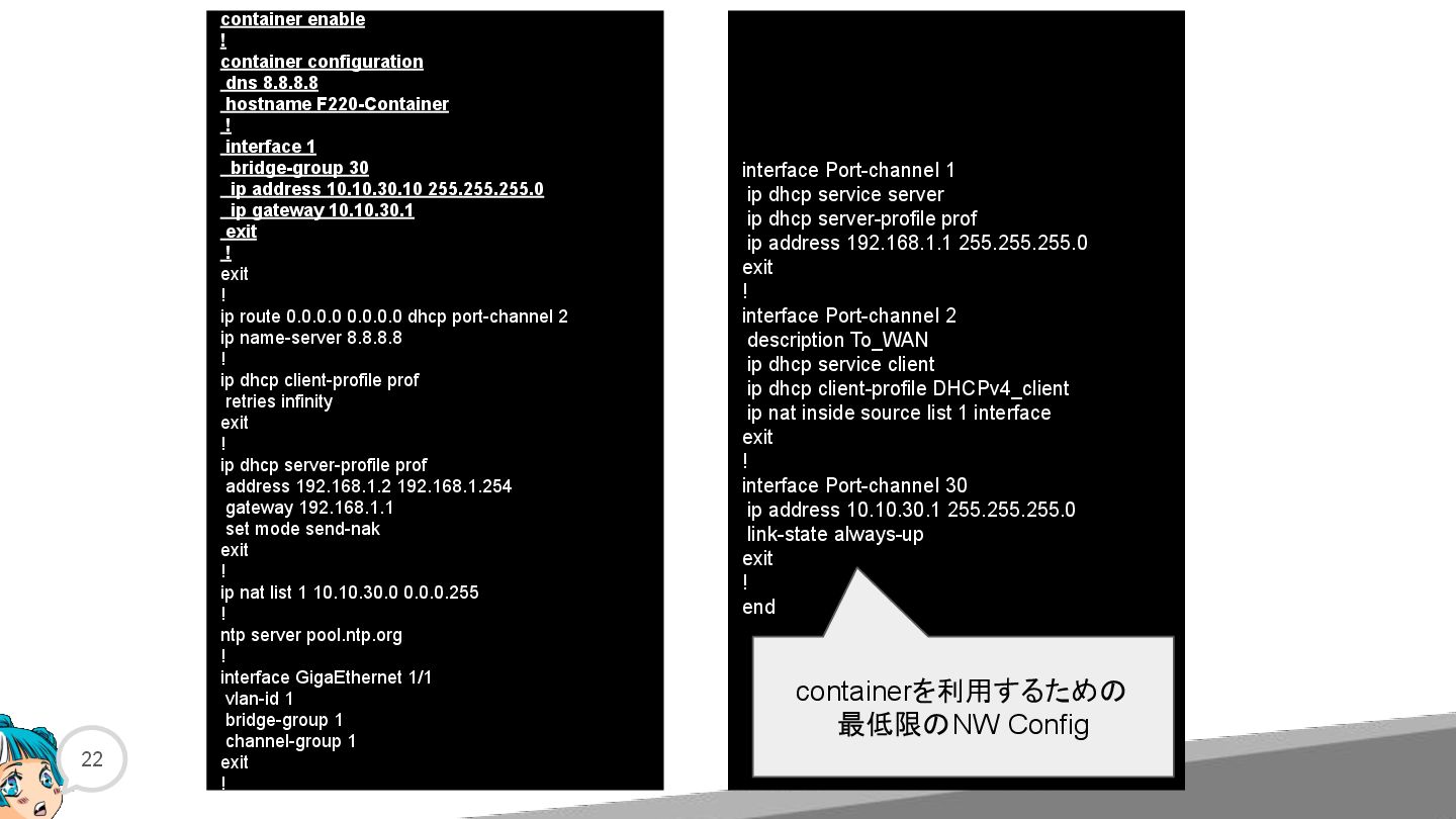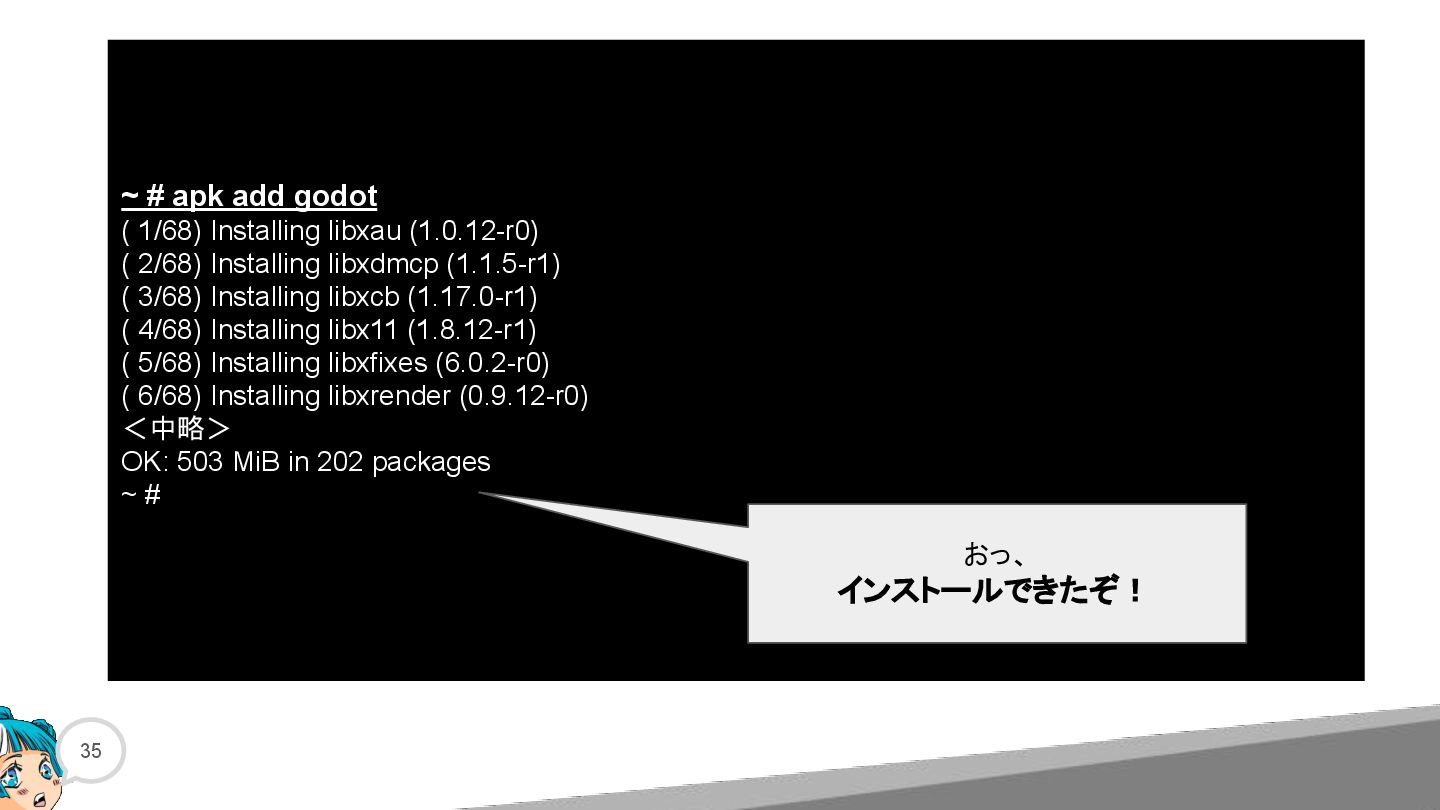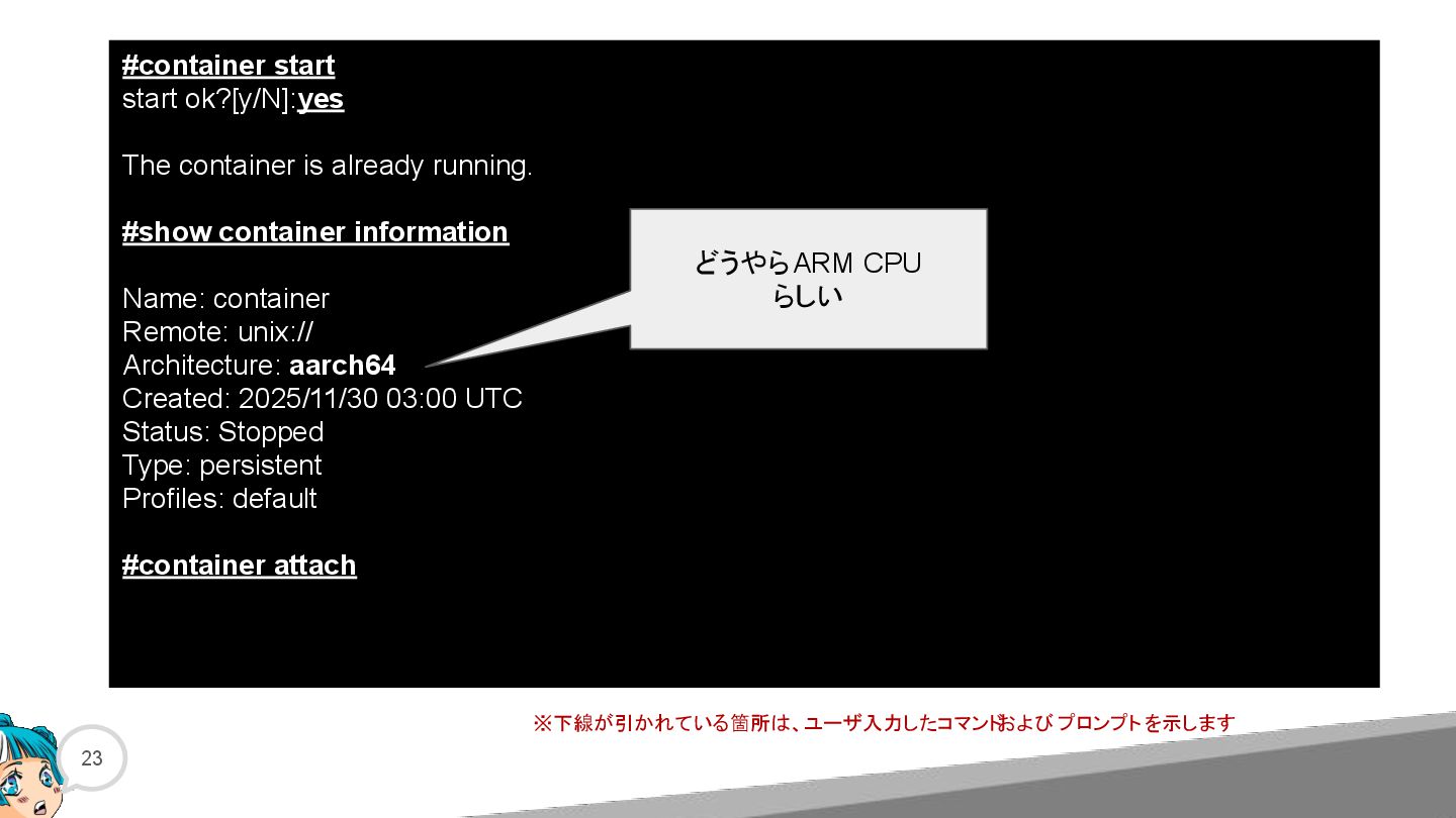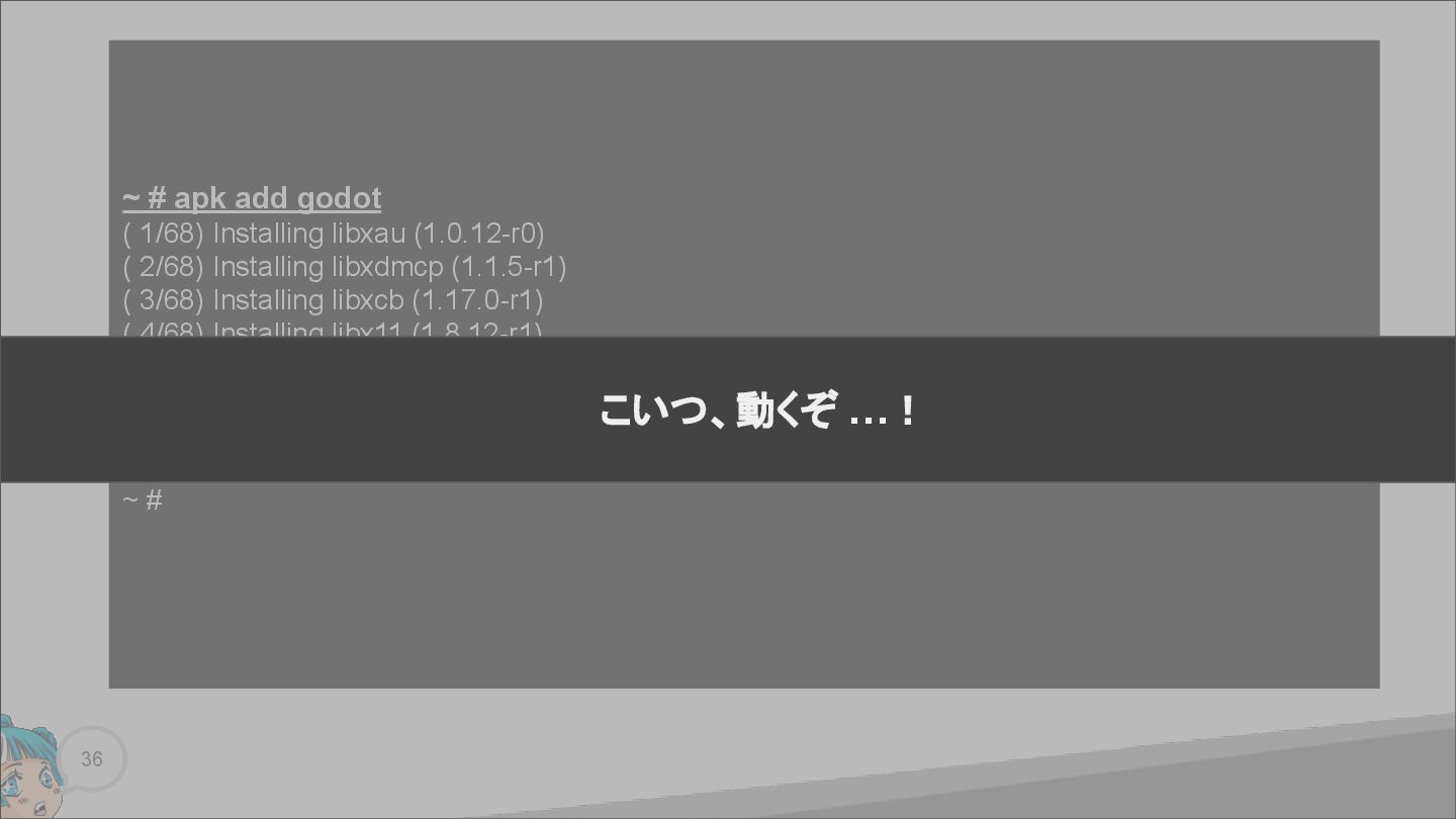 you like to enter a view-only password (y/n)? n Password:Verify:~ # 接続パスワード入力 ~ # vncserver :1 Using desktop session xfce xauth: file /root/.Xauthority does not exist New 'F220-Container:1 (root)' desktop is F220-Container:1 Starting desktop session xfce VNCを入れて リモートログインできるようにする