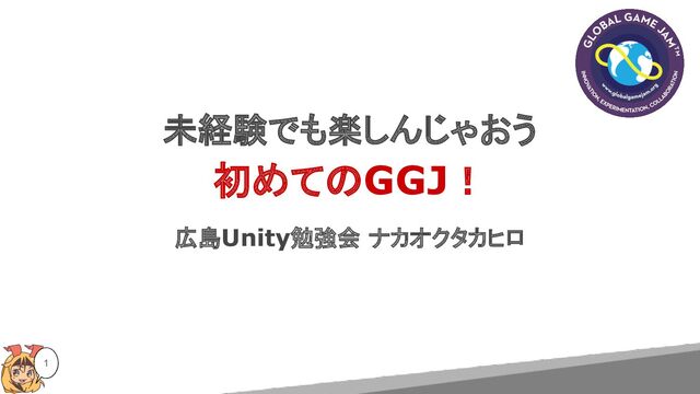 未経験でも楽しんじゃおう 初めてのGGJ! 広島Unity勉強会 ナカオクタカヒロ 1