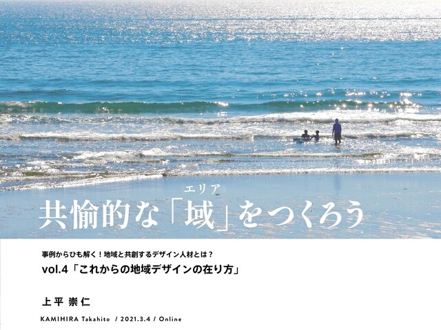 KAMIHIRA Takahito / 2021.3.4 / Online ࣄྫ͔Βͻղ͘ʂҬͱڞ͢ΔσβΠϯਓࡐͱʁ WPMʮ͜Ε͔ΒͷҬσβΠϯͷࡏΓํʯ ্ฏਸਔ 共愉的な