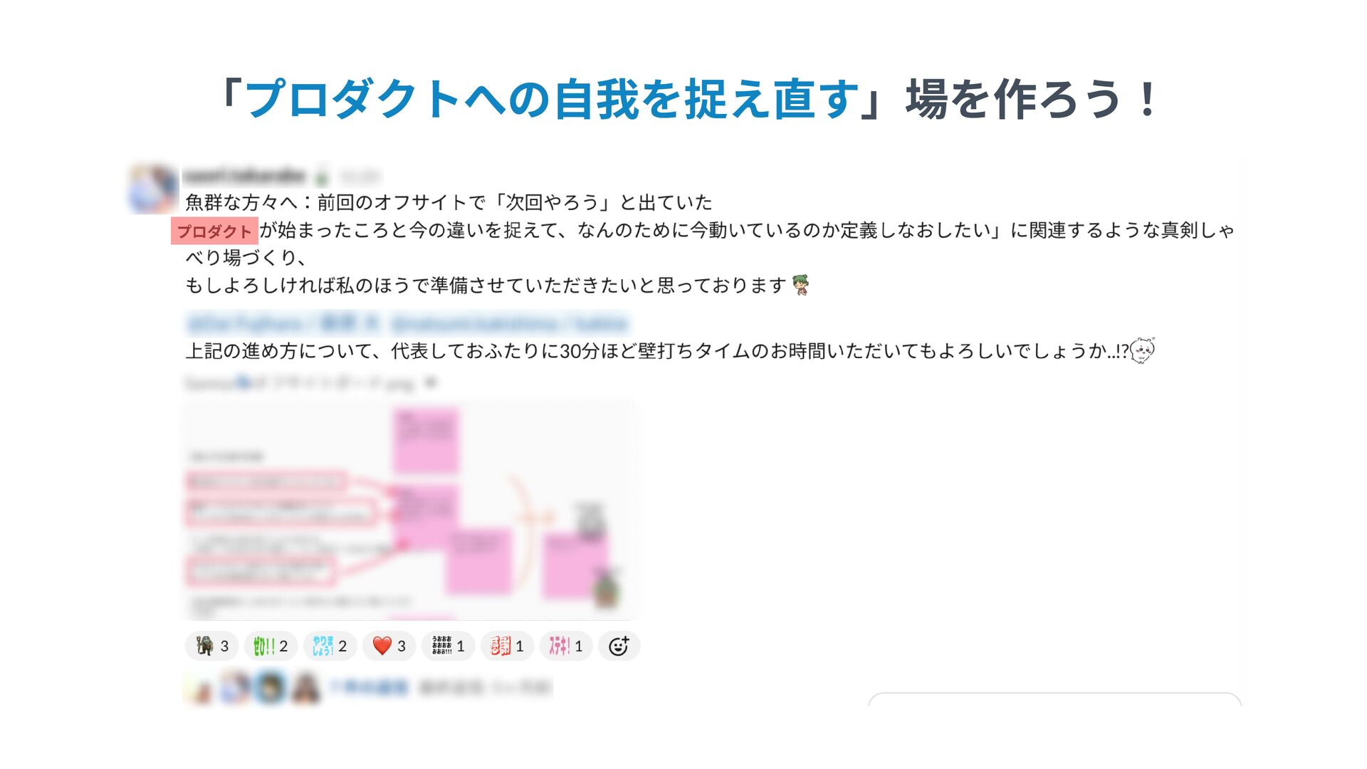価値を 洗い出す 1人ひとりの プロダクトを こうしたい 自我の言語化 自分がジョインする前の プロダクトアップデート背景が知れて 良かったです! みんなの自我が知れて プロダクトビジョンのアップデート のきっかけになりました!