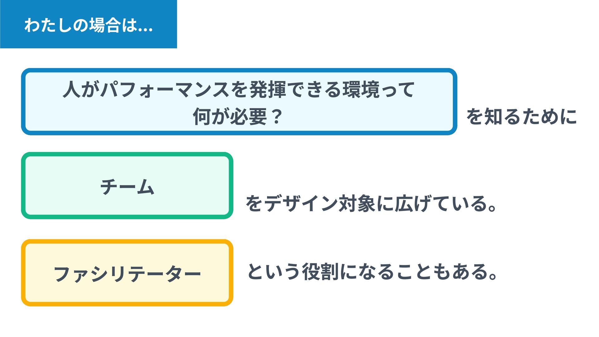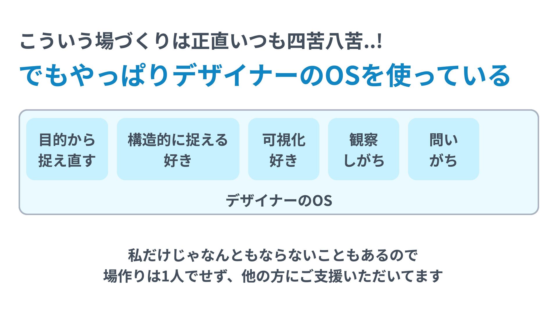 問い がち ・・・ デザイナーのOS 私だけじゃなんともならないこともあるので 場作りは1人でせず、他の方にご支援いただいてます