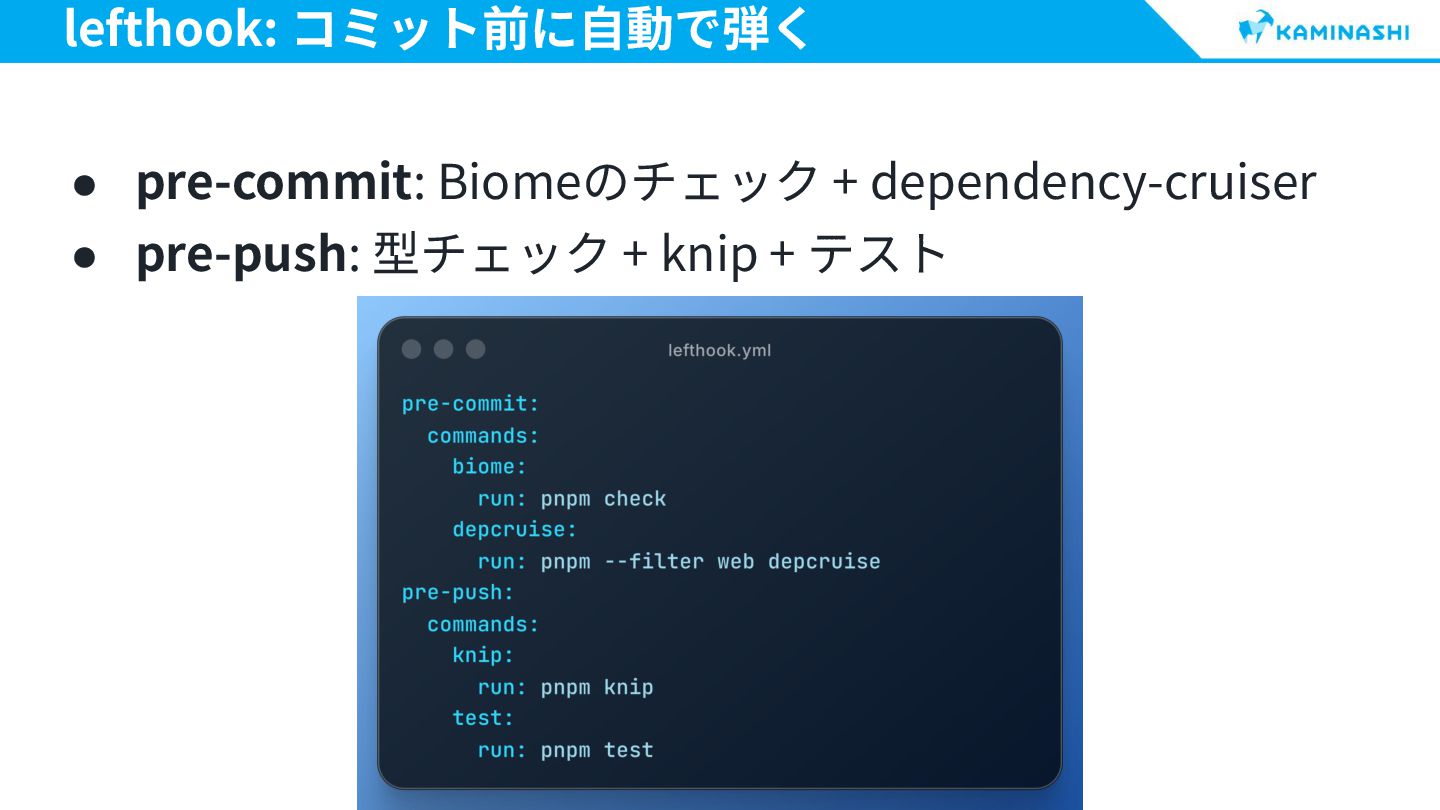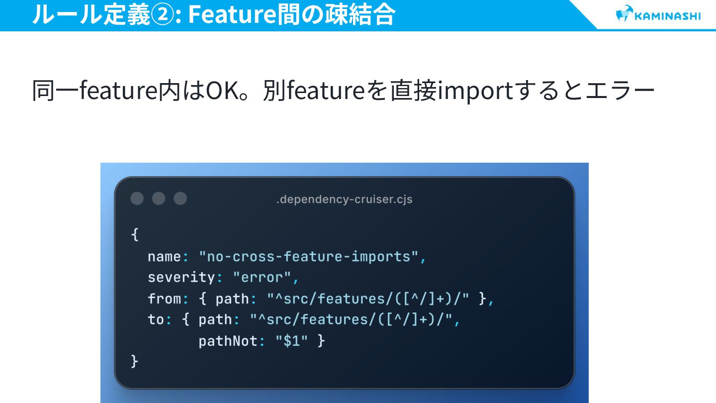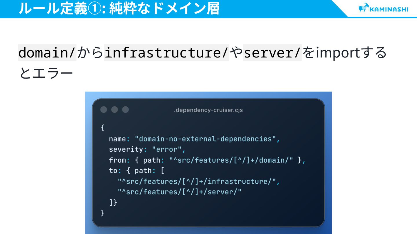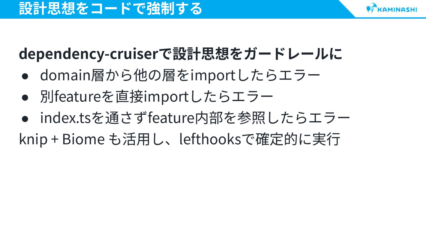dependency-cruiser が⾛る b. 設計違反があればエラー c. → AIが⾃動修正 3. git push