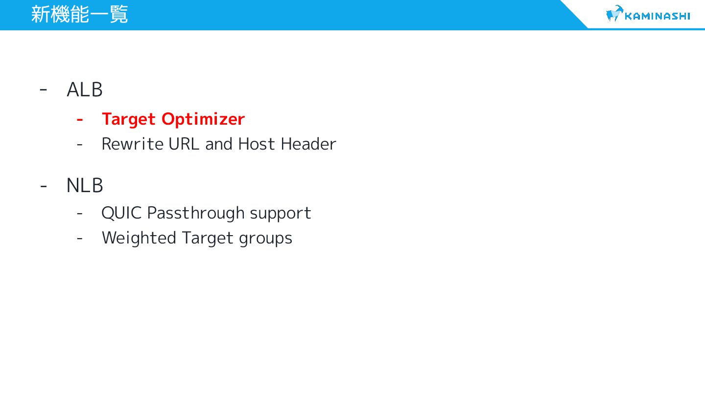 5. 新機能一覧 - ALB - Target Optimizer - Rewrite URL and