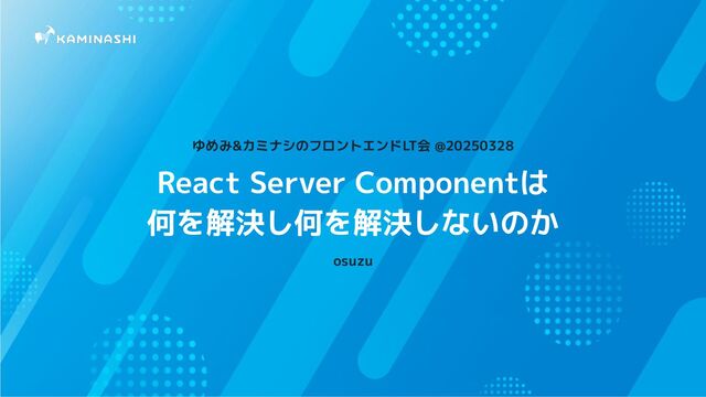 React Server Componentは 何を解決し何を解決しないのか osuzu ゆめみ&カミナシのフロントエンドLT会 @20250328