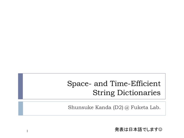 to solve existing problems of string dictionaries } Static compressed double-array tries supporting fast lookup [Kanda+, KAIS 16] [Kanda+, KAIS 17] } Lightweight dictionary compression using dictionary encoding, instead of using powerful text compression [Kanda+, Innovate- Data 17] [Kanda+, DBSJ 18] } Dynamic path-decomposed tries in compact space [Kanda+, SPIRE 17] } Practical rearrangement methods of dynamic double-array tries [Kanda+, SPE 18] Due to the time limitation