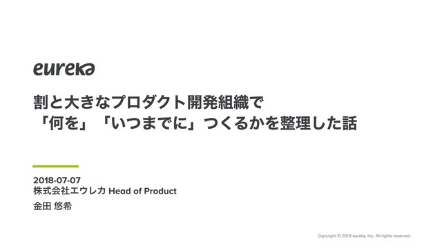 Copyright © 2018 eureka, Inc. All rights reserved. ׂͱେ͖ͳϓϩμΫτ։ൃ৫Ͱ ʮԿΛʯʮ͍ͭ·Ͱʹʯͭ͘Δ͔Λཧͨ͠