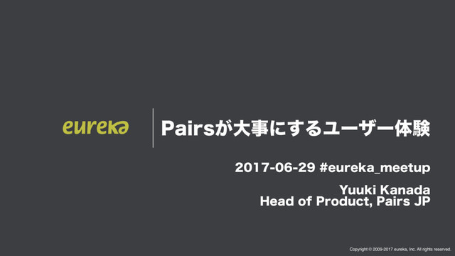 1BJST͕େࣄʹ͢ΔϢʔβʔମݧ Copyright © 2009-2017 eureka, Inc. All rights reserved. FVSFLB@NFFUVQ
