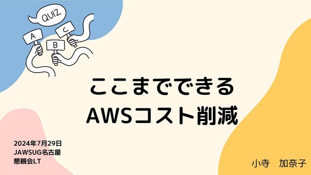 小寺 加奈子 2024年7月29日 JAWSUG名古屋 懇親会LT ここまでできる AWSコスト削減