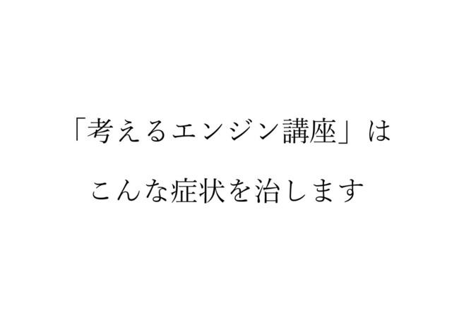 「考えるエンジン講座」は3年ほど前から、法人研修の形態もスタートさせて頂き、今までに、20社・500名以上に導入して頂いております。 ・コンサルティングファームであれば、アクセンチュア、MURCなど ・事業会社であれば、三陽商会、ミスミ、オートバックスなど