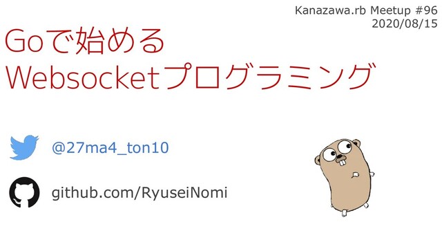 Goで始める Websocketプログラミング @27ma4_ton10 github.com/RyuseiNomi Kanazawa.rb Meetup #96 2020/08/15