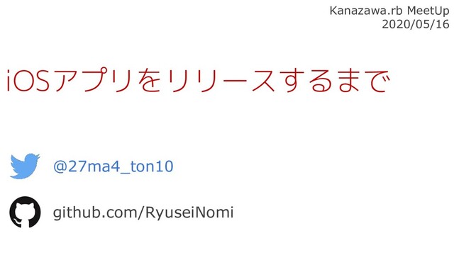 @27ma4_ton10 github.com/RyuseiNomi iOSアプリをリリースするまで Kanazawa.rb MeetUp 2020/05/16