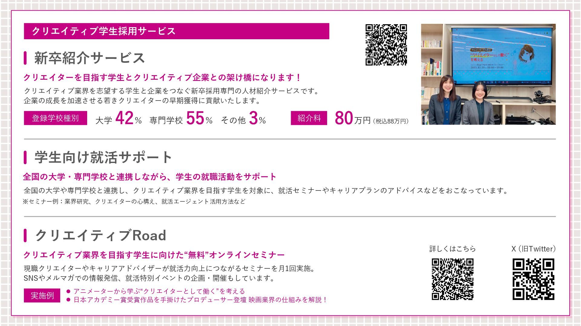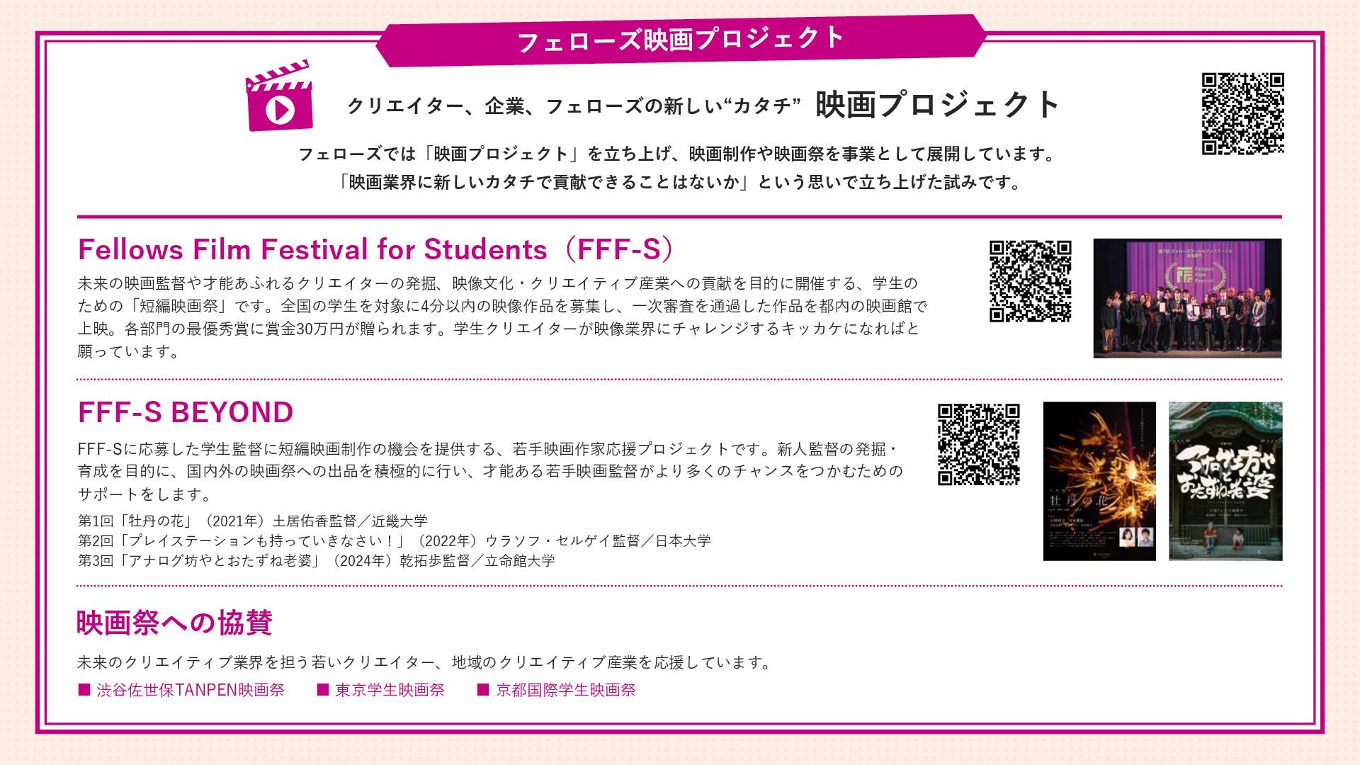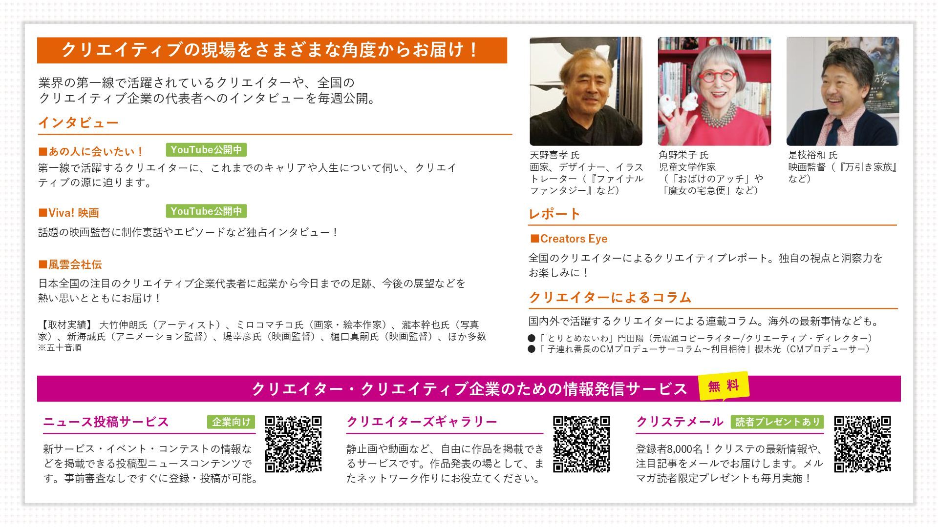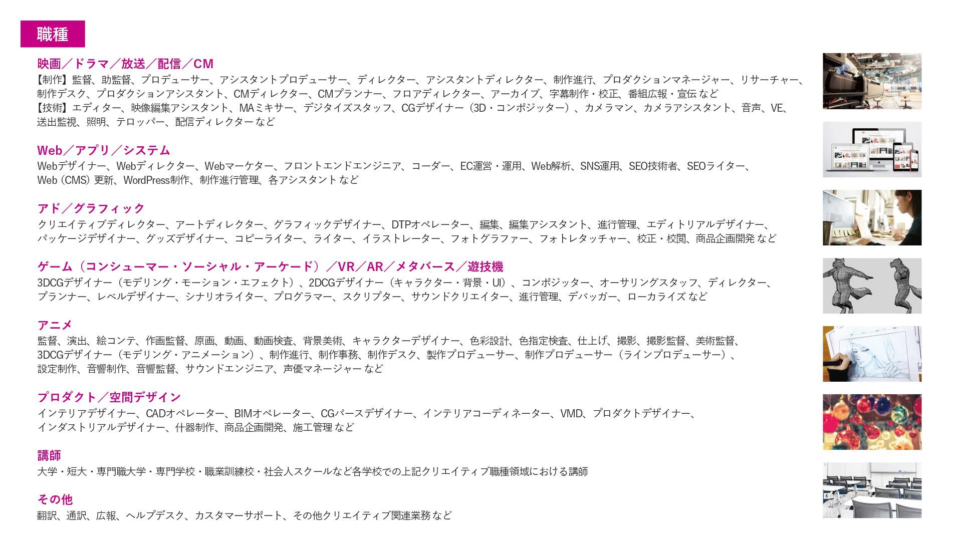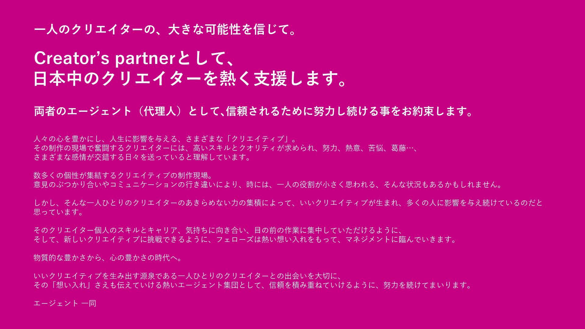 [email protected] お問い合わせはコチラまで! フェローズが提供するもう一つの学びのかたち Instagram CREATORS COMPLEX(クリエイターズコンプレックス)は、デザイン・映像・アニメ・ゲーム・AIな ど、多彩な分野で活躍する有名クリエイターたちから“キャリアの歩み方”や“実践的なノウハウ”を学び、 参加者同士で交流しながら作品やキャリアを磨いていくオンライン学習コミュニティです。