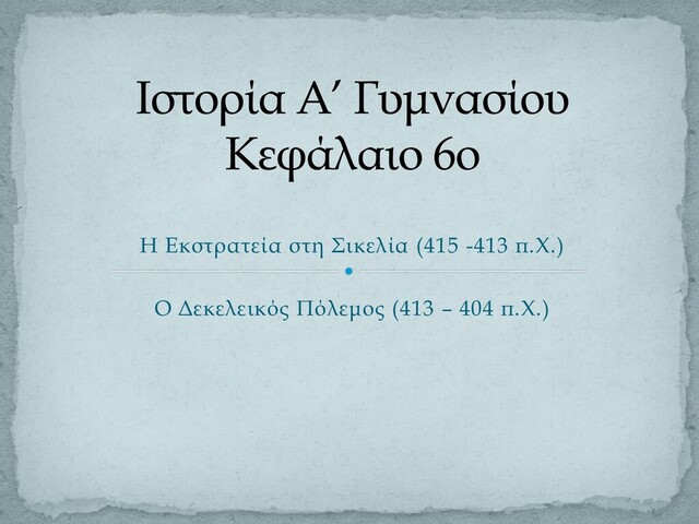 πόλεις του νησιού), η Εγέστα, ζητά από την Αθήνα βοήθεια, καθώς βρίσκεται σε πόλεμο με τις Συρακούσες. Στην Εκκλησία του Δήμου, διαμορφώνονται δύο τάσεις και απόψεις σχετικά με την πραγματοποίηση ή όχι της εκστρατείας.