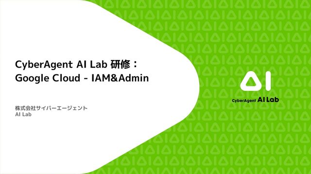 CyberAgent AI Lab 研修: Google Cloud - IAM&Admin 株式会社サイバーエージェント AI