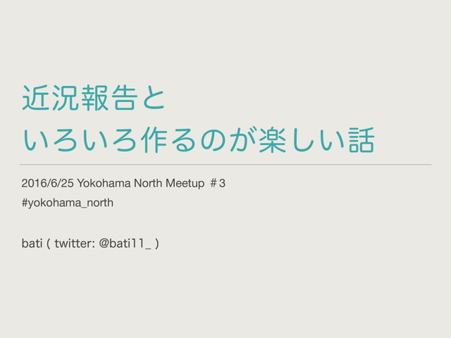 ۙگใࠂͱ ͍Ζ͍Ζ࡞Δͷָ͕͍͠ 2016/6/25 Yokohama North Meetup ˌ3 #yokohama_north CBUJ UXJUUFS!CBUJ@