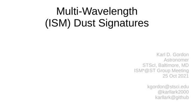 Multi-Wavelength (ISM) Dust Signatures Karl D. Gordon Astronomer STScI, Baltimore,