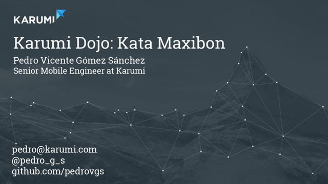 Karumi Trainings For companies: www.karumi.com/trainings: • Architecture, patterns, and principles for Android & iOS. • Testing for Android & iOS. • Advanced mobile development. • Mastering Git. Open trainings: • Architecture, patterns, and principles for Android & iOS. • Testing for Android & iOS.
