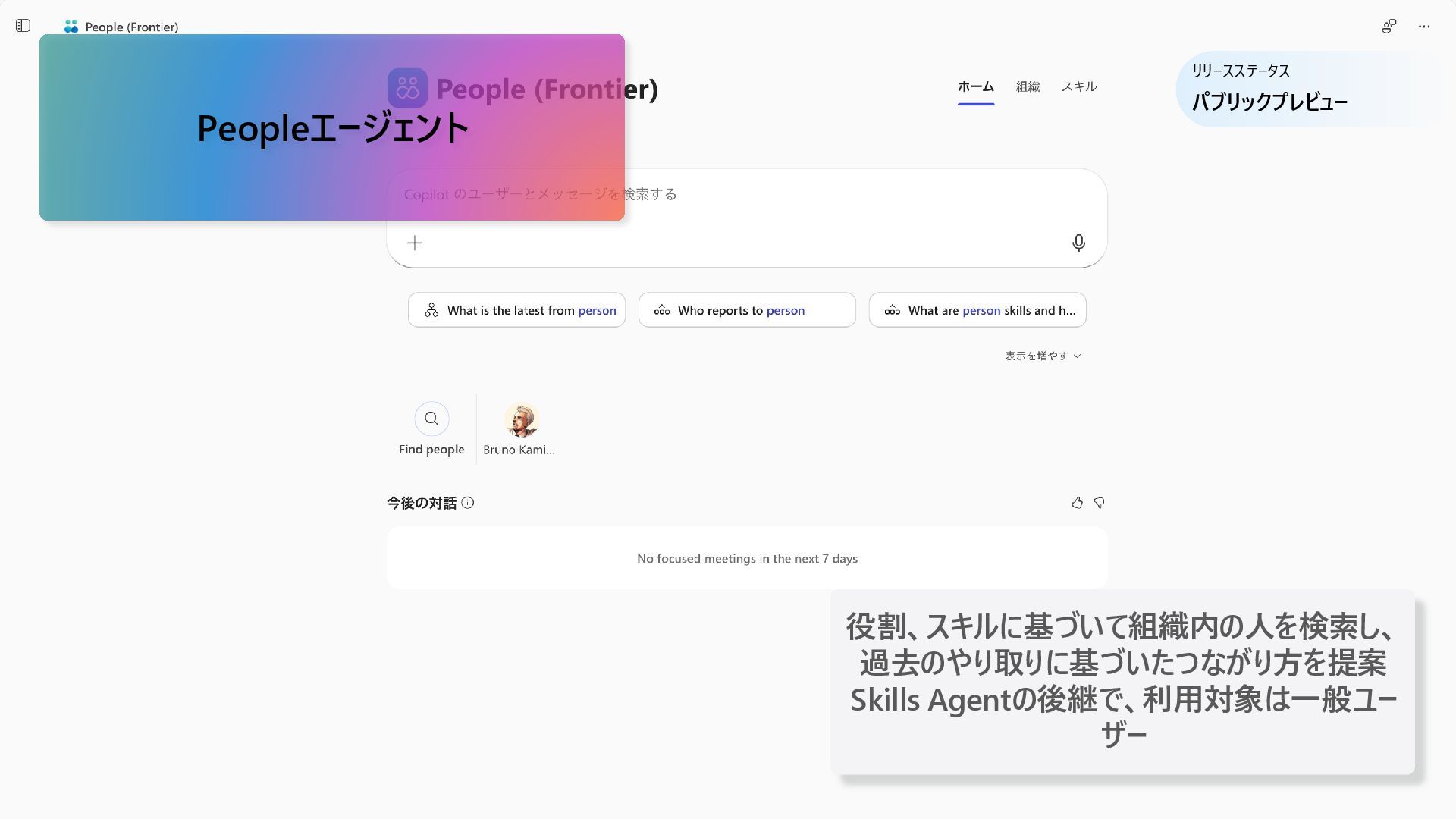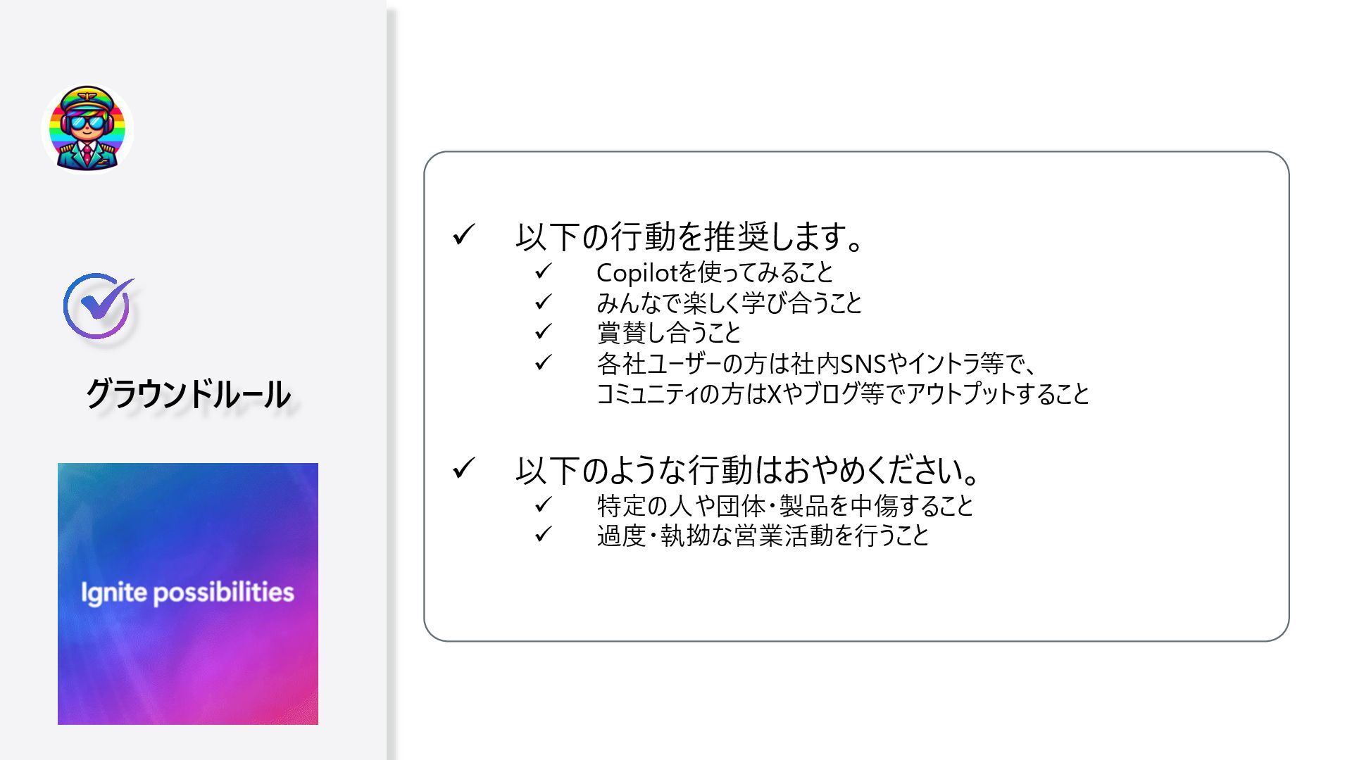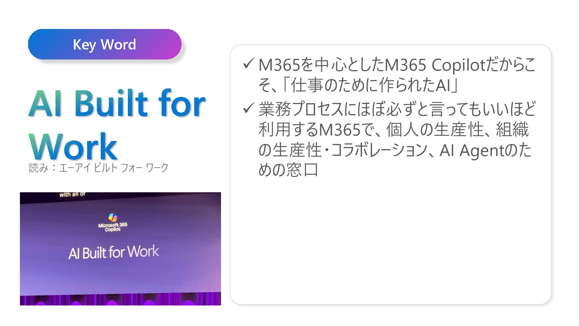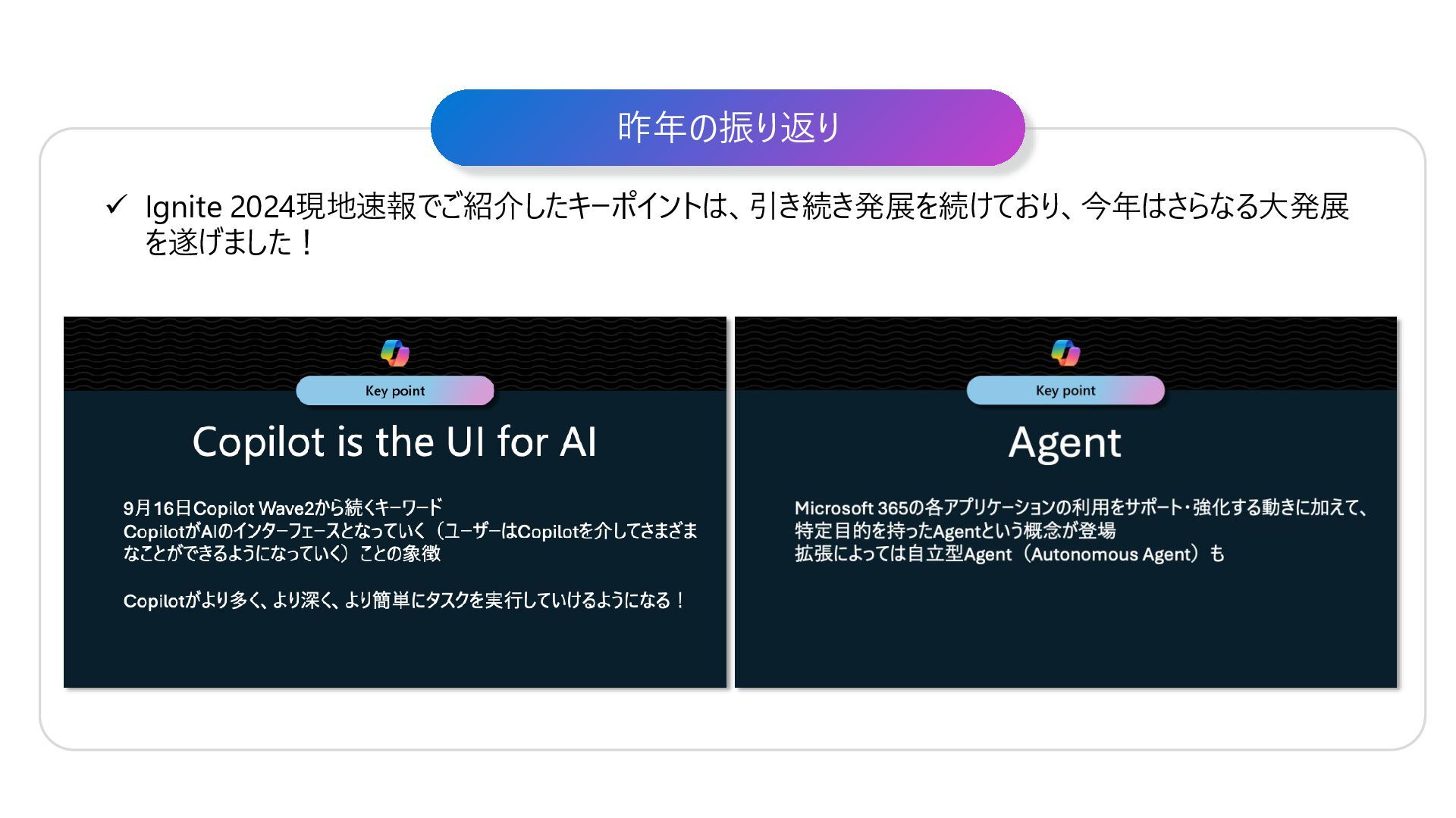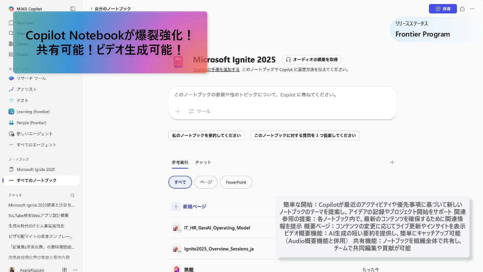 大阪生まれ、大阪育ち。住友商事株式会社入社後、広報部でグローバルコーポ レートサイト運用、SNS立ち上げ、イントラネットリニューアルプロジェクトなど制作系 業務を経て、新聞・TV記者と相対するメディアリレーションズ従事 2022年10月よりIT企画推進部にて、Microsoft 365やイントラネット、生成AI等 のコラボレーションシステムを中心としたアプリケーション企画・運用・保守に従事 広報経験から、PR理論やユーザー感情起因の発想を用いたCopilot展開を実施 2025年3月よりMicrosoft Most Valuable Professional for M365 Copilot Experience Expertise • Web Master • Public Relations • Media Relations • Microsoft 365 • Copilot • Power Platform • Generative AI @kazuaki asada @kazuaki asada Microsoft AI Tour Tokyo 2024での一枚 伝説のネットミームを目指しました