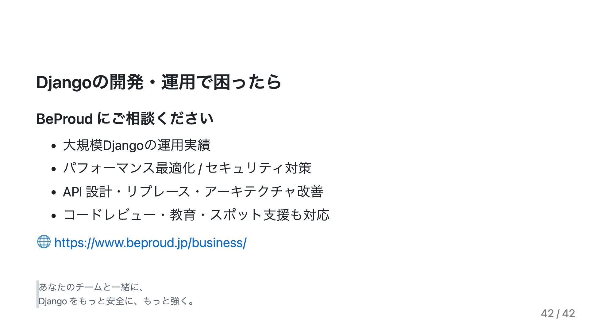 BeProud Inc. Django歴: 8年以上 PyCon JP・DjangoCongress JP 登壇 / 書籍・雑誌執筆経験あり 「Djangoの安全設計」と「実運用での落とし穴」を 開発現場の視点から共有します。 3 / 42