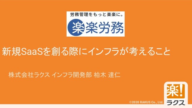 ©2020 RAKUS Co., Ltd. 新規SaaSを創る際にインフラが考えること 株式会社ラクス インフラ開発部 柏木 達仁
