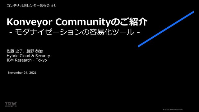Tokyo November 24, 2021 Konveyor Communityのご紹介 - モダナイゼーションの容易化ツール - コンテナ共創センター勉強会 #8 @2021 IBM Corporation © 2021 IBM Corporation