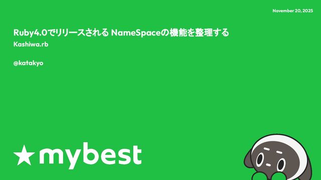November 20, 2025 Ruby4.0でリリースされる NameSpaceの機能を整理する Kashiwa.rb @katakyo