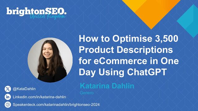 In this BrightonSEO October 2024 deck, Katarina discusses how to use ChatGPT and Make to optimise product descriptions at scale for eCommerce. Learn how to automate the process, reduce manual effort, and improve Google rankings while driving organic traffic.