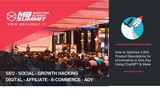 My talk at Marketing Business Summit in Milan 17. November 2024 on 'How to Optimise 3,500 Product Descriptions for eCommerce in One Day Using ChatGPT & Make'.