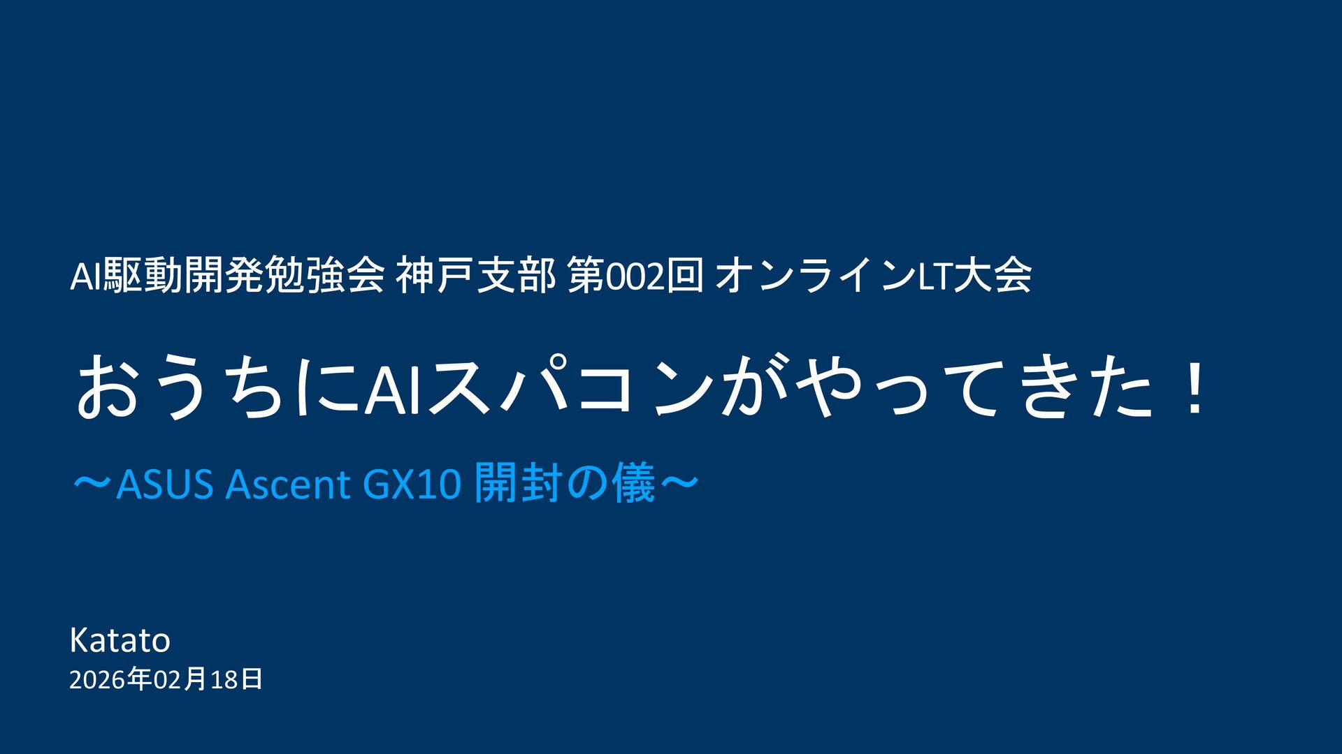 Katato 2026年02月18日 おうちにAIスパコンがやってきた! 〜ASUS Ascent GX10 開封の儀〜 AI駆動開発勉強会 神戸支部 第002回