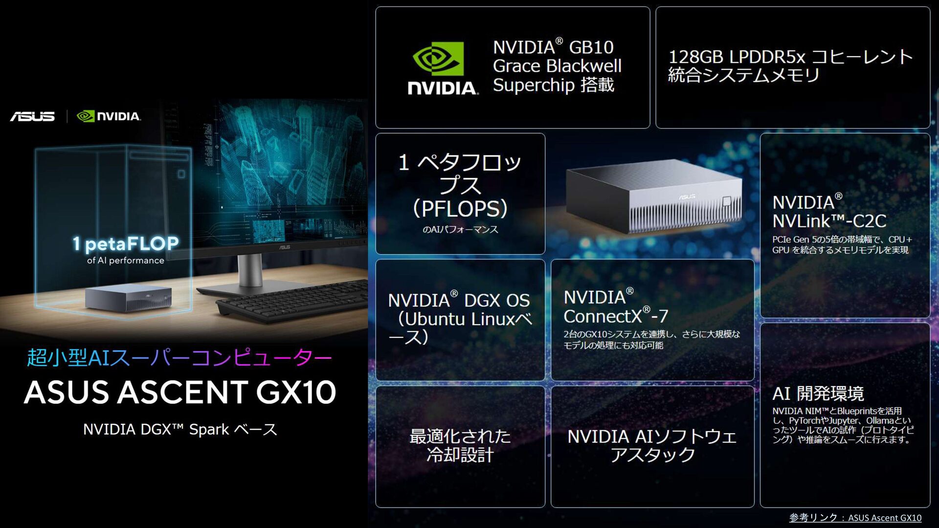 参考リンク:ASUS Ascent GX10 | ドスパラ【公式】