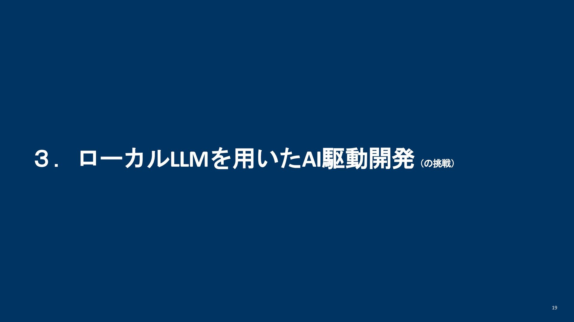 3.ローカルLLMを用いたAI駆動開発 (の挑戦) 19